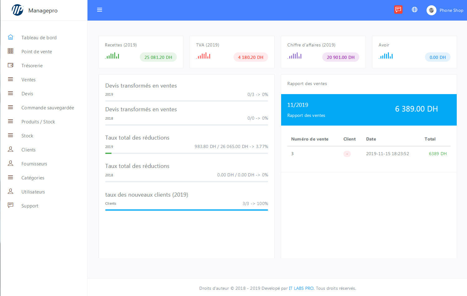 IT LABS PRO offre une formation en ligne qui dure entre une et quatre heures. Vous permettant d’être opérationnel sur la plateforme. Si vous souhaitez avoir une formation présentielle, cette dernière sera facturée à 2000 MAD HT la demi journée.