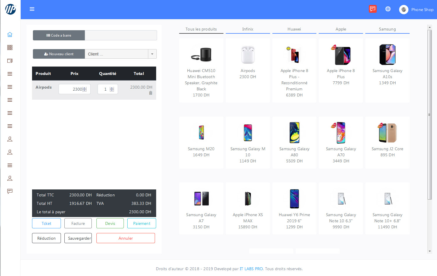 Si vous choisissez de personnaliser vos documents (facture, ticket, devis, bon de livraison, bon de commande) vous serez amené à payer 500,00 DH HT (Charge non récurrente).